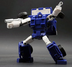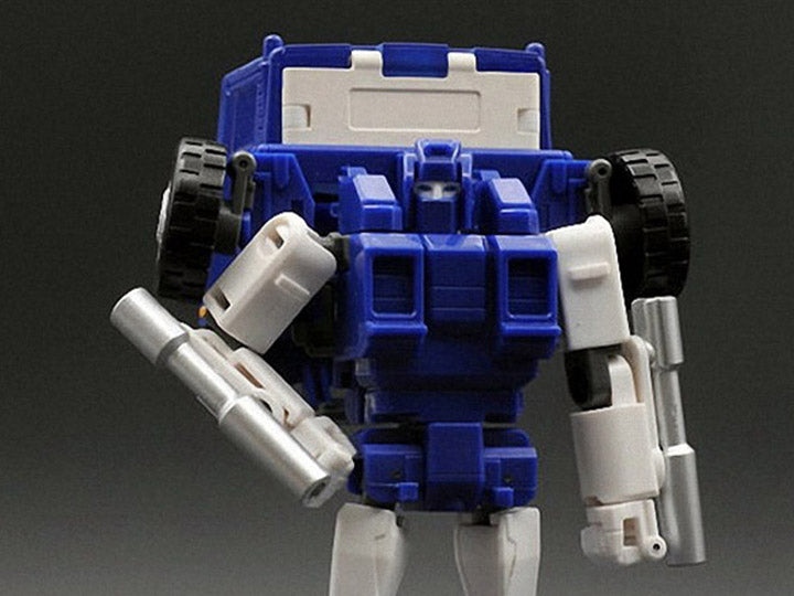 Entering the BadCube Old Time Series is OTS-13 Piper, a transforming robot warrior. Piper is a fully articulated and transforms form robot to truck mode and features several die-cast parts. Piper is armed with arm mounted gas cannons that become smoke stacks in truck mode.