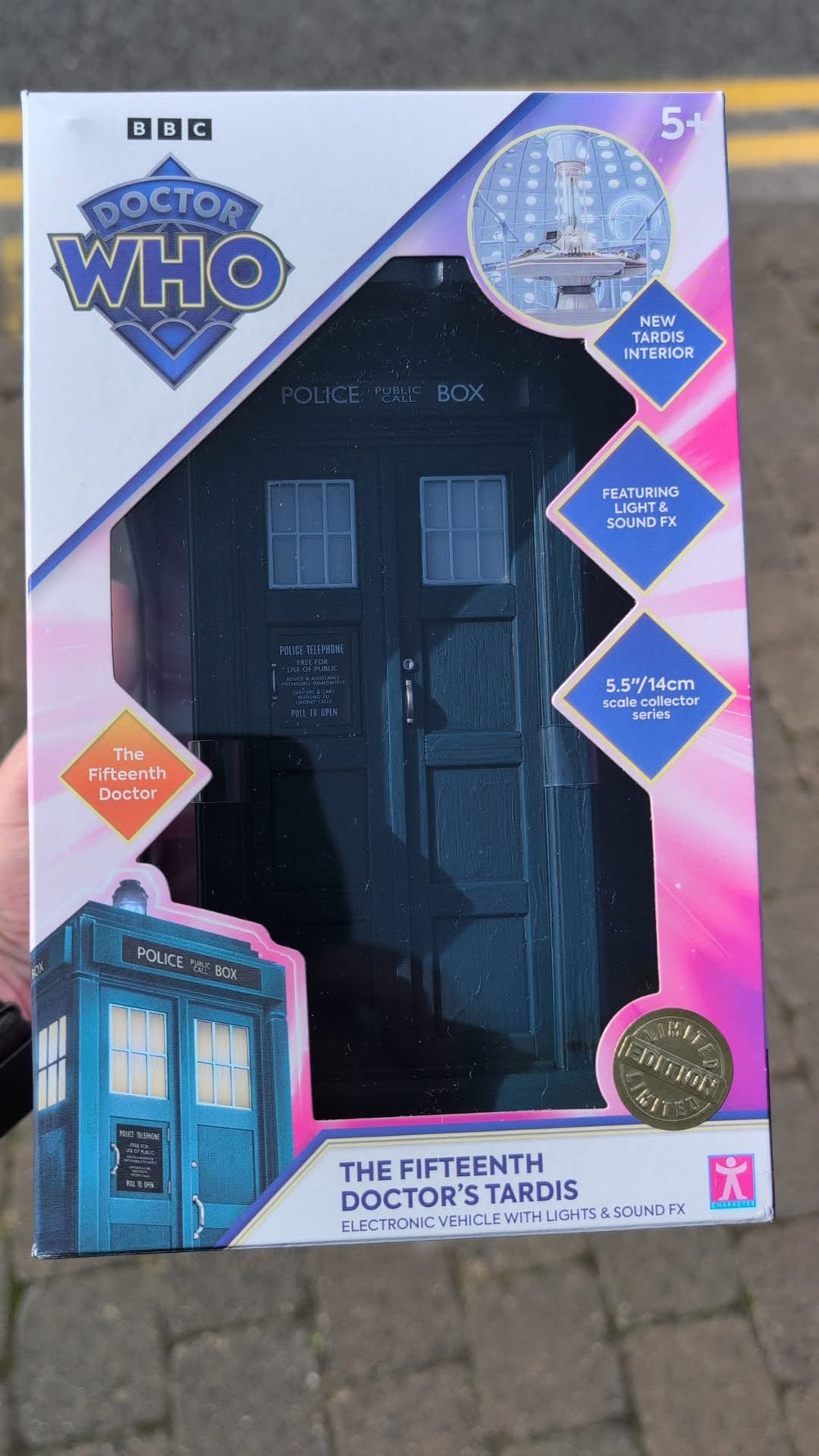 This is a new electronic TARDIS with lights and sounds from the show. Also includes an insert for the 15th and 13th Doctor’s TARDISes.