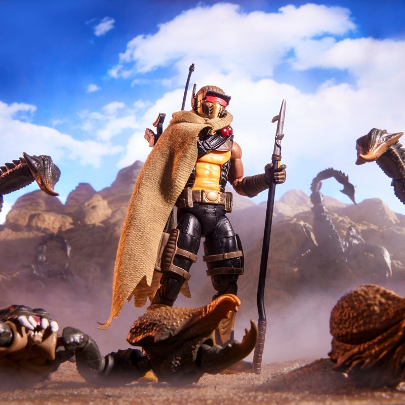 New to the G.I. JOE Classified Series line, Cobra Desert Scorpion & SKRP10N-25 pet come ready for adventure, with multiple points of articulation for high poseability. This Cobra Desert Scorpion figure contains 12 character-inspired accessory pieces including swapable faceplate for multiple looks, backpack with connecting cord, 2 knives, grapple launcher with removable hook and attached line, scorpion prod, 2 claws, and weapon accessories; plus softgoods cape and helmet skirt. SKRP10N-25 is a fully articulated colossal pet with massive claw pincers and unattached tail piece.