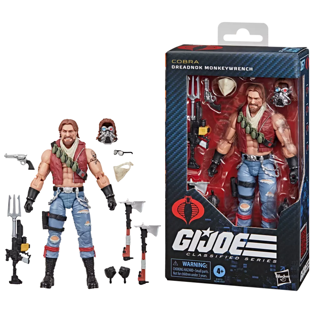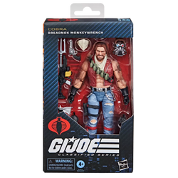 G.I. Joe is a highly skilled, on-demand, special operations force tasked with defending the world from Cobra, a ruthless criminal organization bent on total domination. Wherever there’s trouble, G.I. Joe is there. New to the G.I. Joe Classified Series line, Dreadnok Monkeywrench comes ready for adventure, with multiple points of articulation for high poseability. This Dreadnok Monkeywrench figure contains 10 character-inspired accessory pieces including alternate masked face, sunglasses, bandana mask, 2 alternate hands, 2 custom axes, and weapon accessories such as his signature trident rifle; plus a removable scarf. Monkeywrench was born in Rhyl, North Wales, where he built explosive devices indiscriminately for groups of local thugs and anarchists. He drifted to London's East End where he developed rudeness and crude anti-social behavior to levels unheard of in the western hemisphere. Eventually, his wanderings brought him to Australia where he joined up with the Dreadnoks.