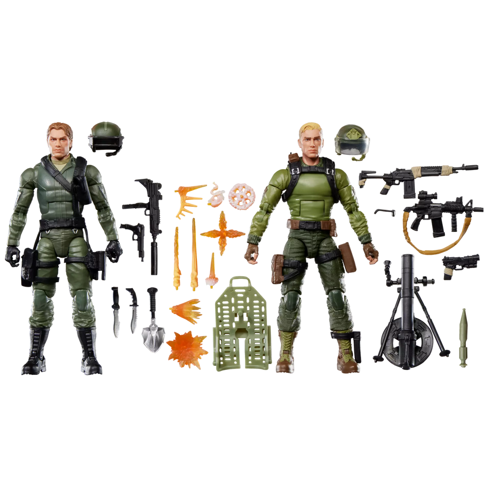 G.I. Joe is a highly skilled, on-demand, special operations force of men and women from around the globe tasked with defending the world from Cobra, a ruthless criminal organization bent on total domination. The brave members of G.I. Joe are prepared to seek out Cobra in any environment on the planet. From hostile jungles to ice-clad arctic peaks…wherever there’s trouble, G.I. Joe is there. New to the G.I. Joe Classified Series line, Ralph “Steeler” Pulaski & Short-Fuze comes ready for adventure, with multiple points of articulation for high poseability. This Ralph “Steeler” Pulaski & Short-Fuze figure set is bursting with 29 character-inspired accessory pieces. Steeler comes with comes with helmet, knife, 9 blast effects, and weapon accessories. Short-Fuze comes with knife, entrenching tool, removable glasses, helmet, mortar with base and rocket, backpack, and weapon accessories.