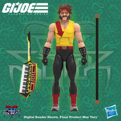 This commemorative action figure set includes 6-inch-scale figures of all four founding members. This commemorative action figure set includes 6-inch-scale figures of all four founding members—the Dreadnoks: Zartan, Ripper, Buzzer, and Torch—each equipped with their signature instrument and a total of 29 accessories. The musical accessories, include a a guitar, bass, keytar, 5 instrument straps, and a full 6-inch-scale drum kit complete with a floor tom, hi-hat with pedal, hi tom, mid tom, bass drum with a kick pedal, stool, 2 drumsticks, snare drum, cymbals and stands. Buzzer rocks removable glasses and a neckerchief. With detailed designs and exceptional articulation, these figures are perfect for dynamic displays.