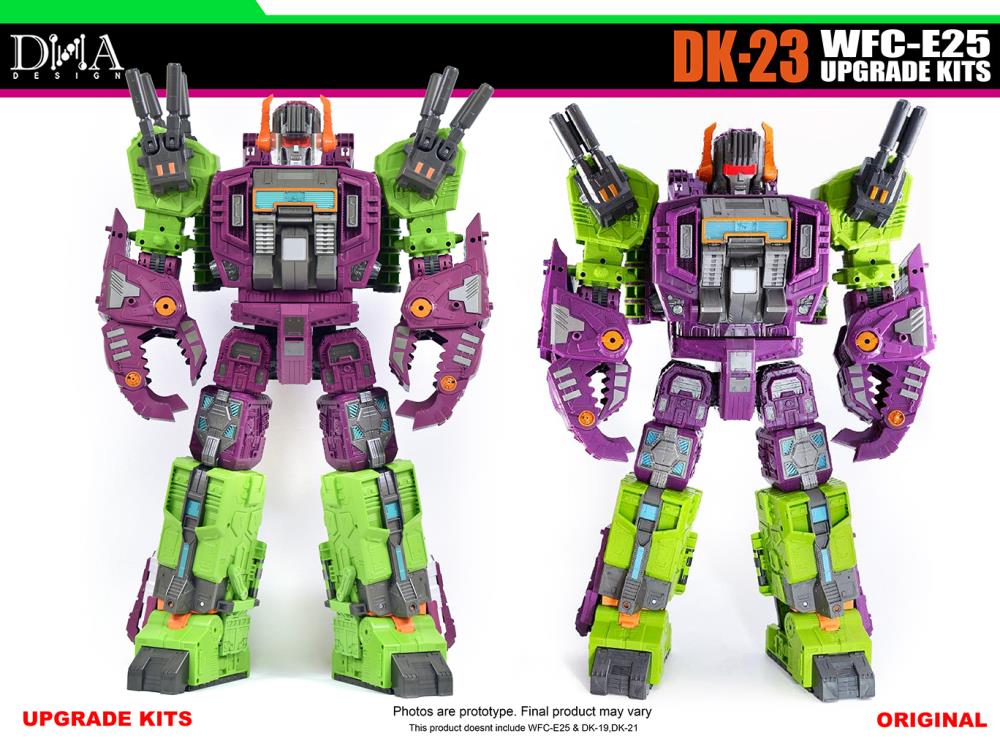 The DK-23 Upgrade Kit contains two feet parts and two leg extenders for the separately sold Earthrise: War for Cybertron Trilogy Scorponok. The extra parts do no interfere with the transformation, so there is no need to dismantle the figure.