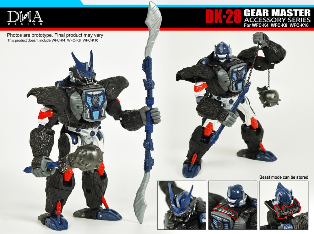 The DK-28 Upgrade Kit contains several new parts for the separately sold WFC-K4 Deluxe Cheetor, WFC-K8 Voyager Optimus Primal, and WFC-K10 Leader Megatron. The extra parts do not interfere with the transformation, so there is no need to dismantle the figure.