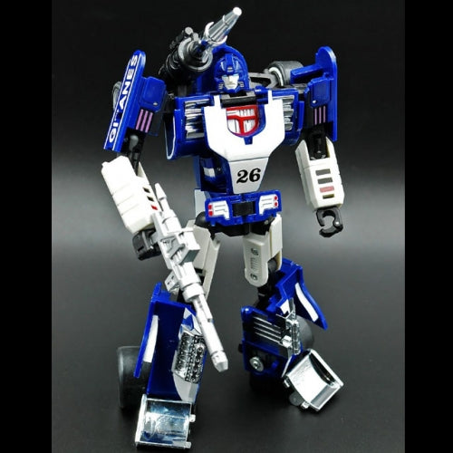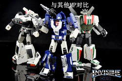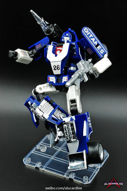 DX9 Toys D03 Invisibel is approximately 16CM/6.3" tall and Masterpiece scaled.changes from an F1 race car to robot and back. Figure includes weaponry and accessories as shown.