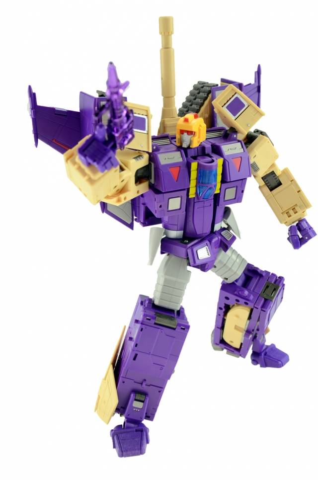 DX9-08 Gewalt is a triple changer that can transform from robot mode to either a tank or a jet fighter. DX9's Gewalt towers over even MP-10 Optimus (sold separately) and is a Masterpiece scaled triple changer!