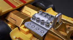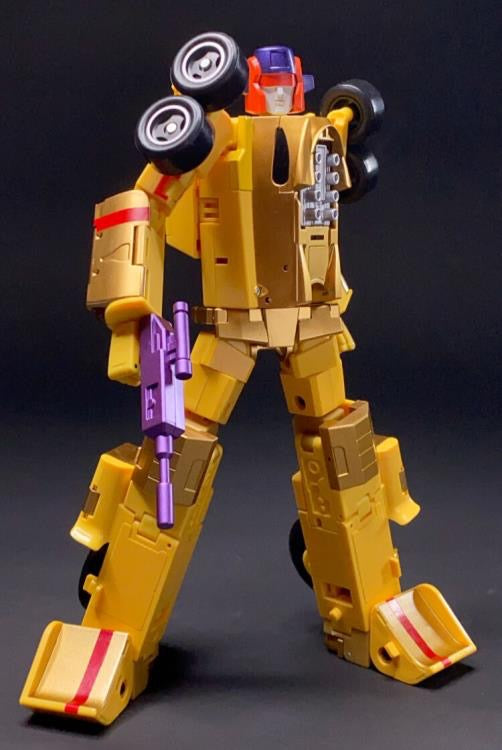 DX9's D17 Giuliano is one of the Atilla Combiner figures limbs that transforms from robot to high speed racecar and back! Figure is MP scaled, and includes weaponry as shown. Together all 5 figures combine together to form the mighty Atilla! Figure is made of high quality ABS & die-cast parts.
