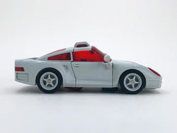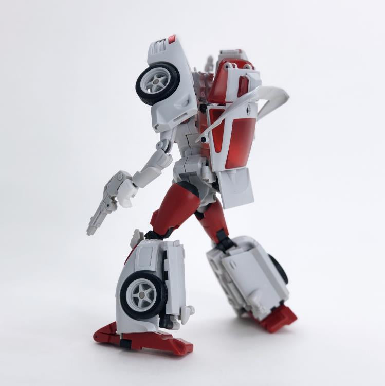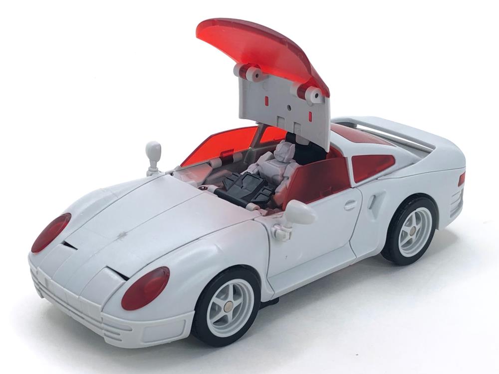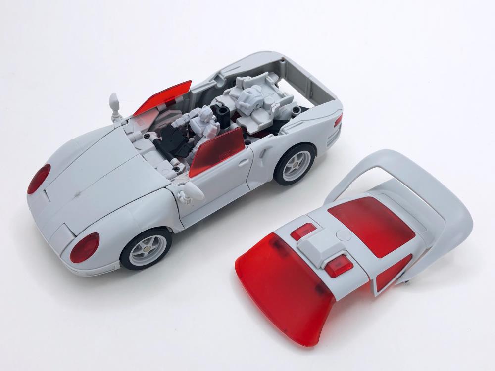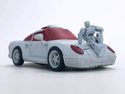 MB-12 Athena figure is part of Fans Hobby's Master Builder series which all figures in this series are Masterpiece scale and this figure stands 6.69 inches tall in robot mode. MB-12 Athena's alternate mode is a Sports Car with a full arsenal of weapons and accessories.