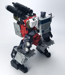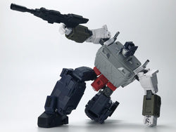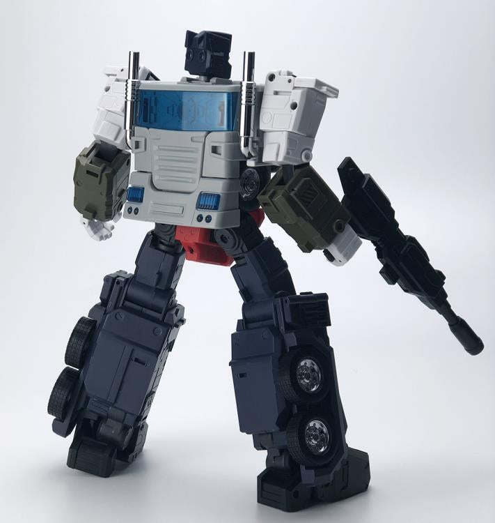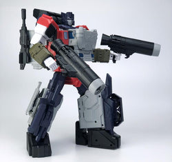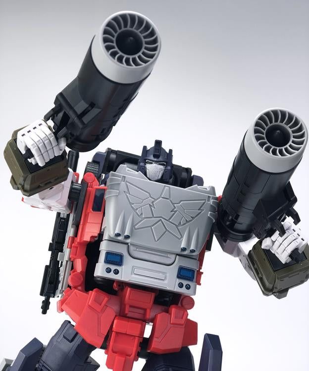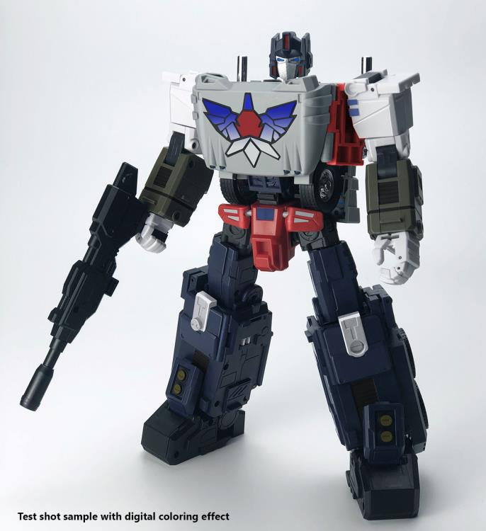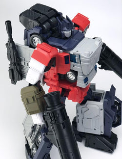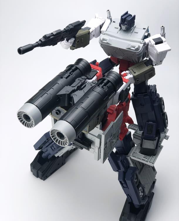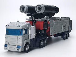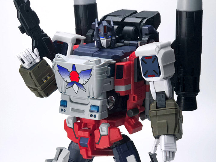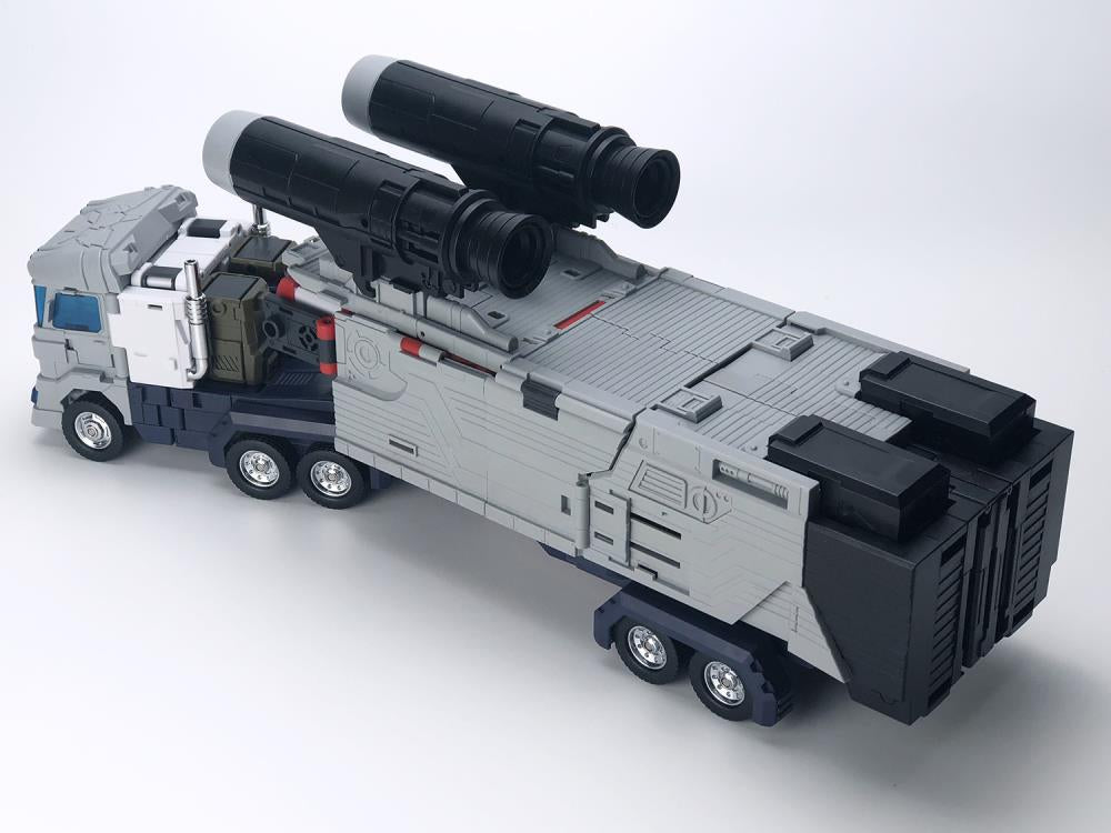 Master Builder MB-16A Machine Eagle stands 12.60 inches tall and transforms from robot to big rig with trailer. The trailer itself can transform into a battle station. Machine Eagle is made of ABS plastics and metal alloy and features a high level of poseability.