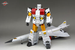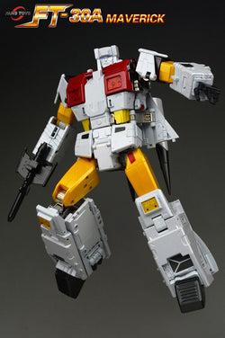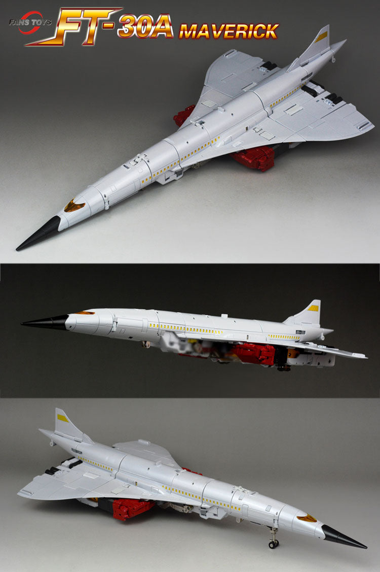 Fans Toys FT-30A Maverick stands 25.5CM/10" tall in robot mode and contains die-cast parts. Maverick transforms from supersonic jet to robot and back and is Masterpiece Scaled! Combines with 4 other jets (sold separately) to form one massive MP scaled combiner robot, that will tower over other figures forming one of the largest combiners ever made!