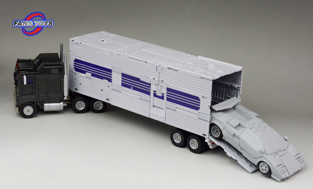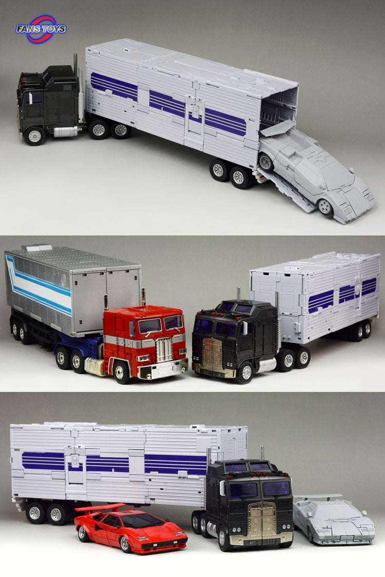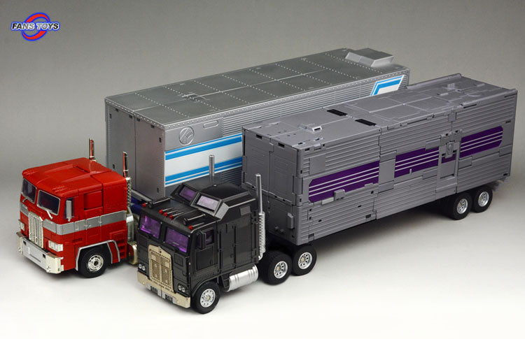 Fans Toys FT-31A Roadking stands 25.5CM/10" tall in robot mode and contains die-cast parts. Roadking transforms from robot to truck with tractor trailer and cab and back and is Masterpiece Scaled! Combines with 4 other race cars (sold separately) to form one massive MP scaled combiner robot, that will tower over other figures forming one of the largest combiners ever made!