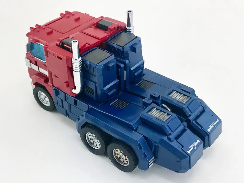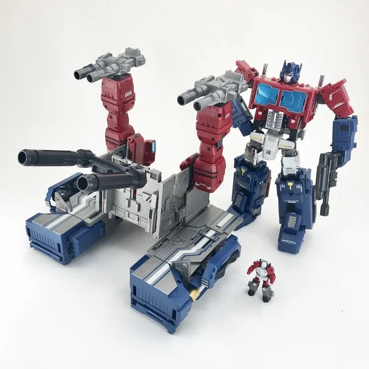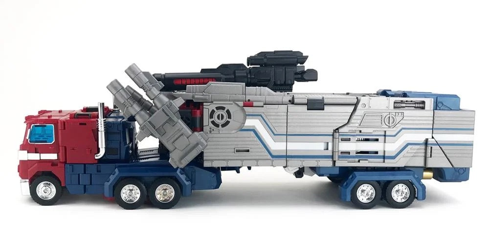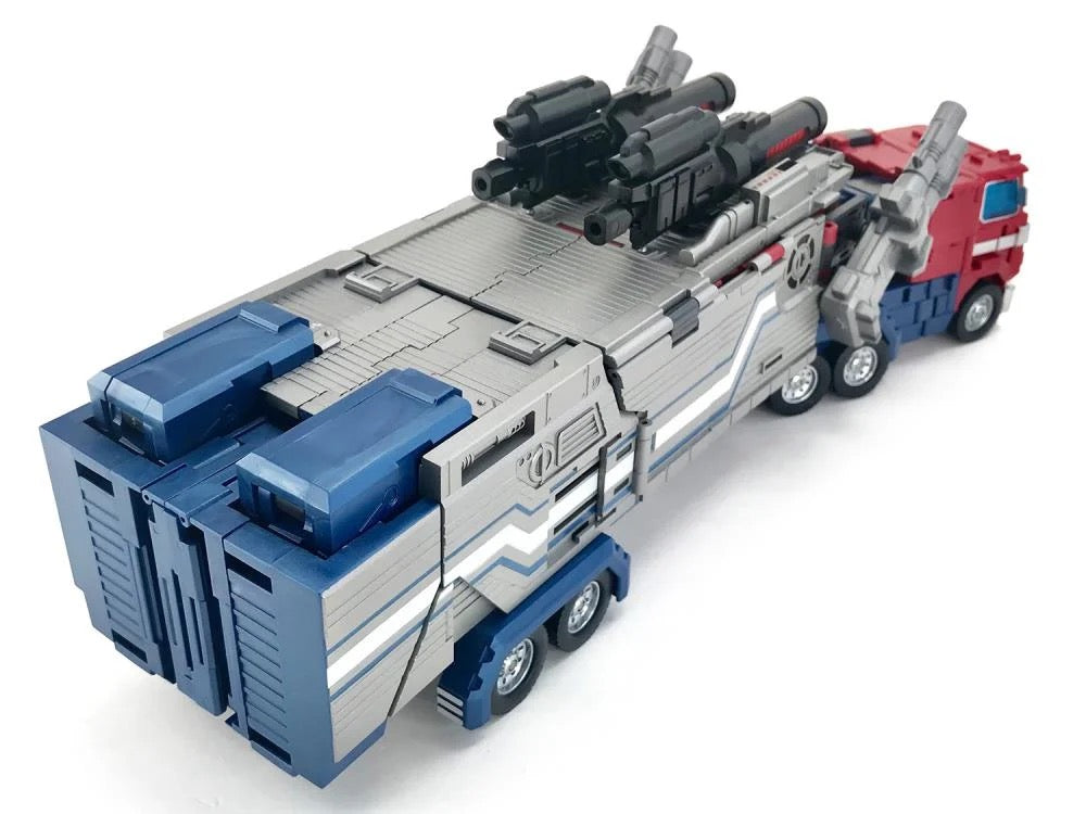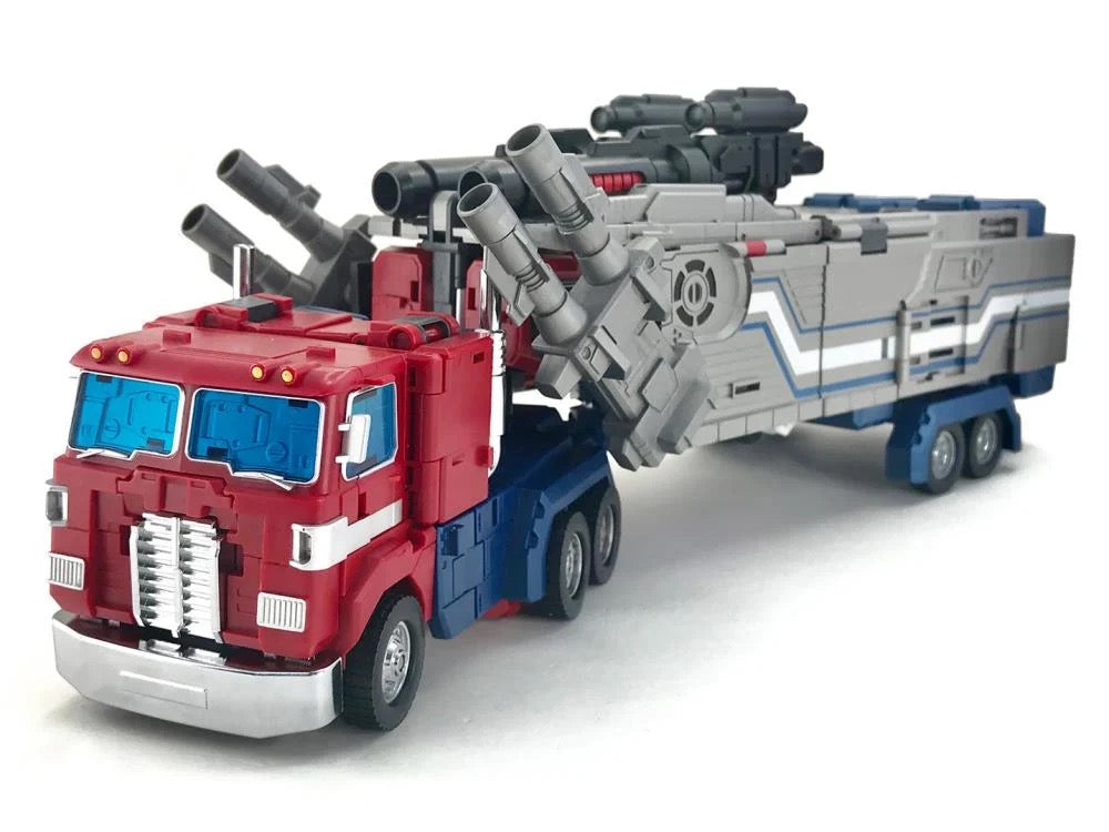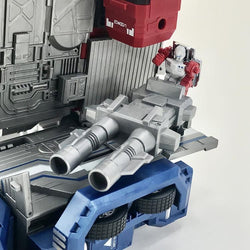 Master Builder MB-06C V2 Power Baser stands 12.6 inches tall and converts from robot to a big rig with a trailer. The trailer itself can convert into a battle station. Power Baser is made of ABS plastics and metal alloy and features a high level of poseability. Power Baser comes armed with two double-barreled blaster cannons and two blaster rifles.