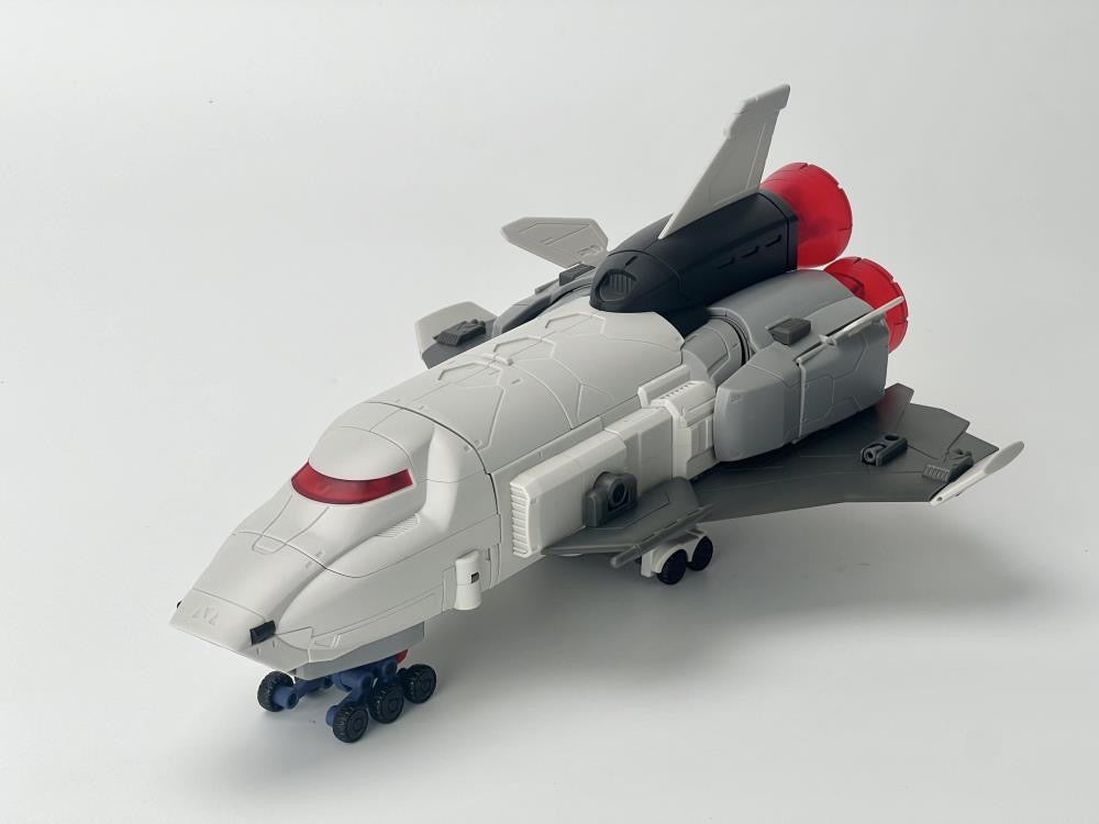 - Converts from robot to rocket ship mode