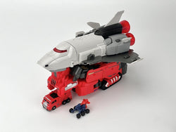This robot figure converts from robot mode to rocket ship mode and back again. It can also convert into an attack base!