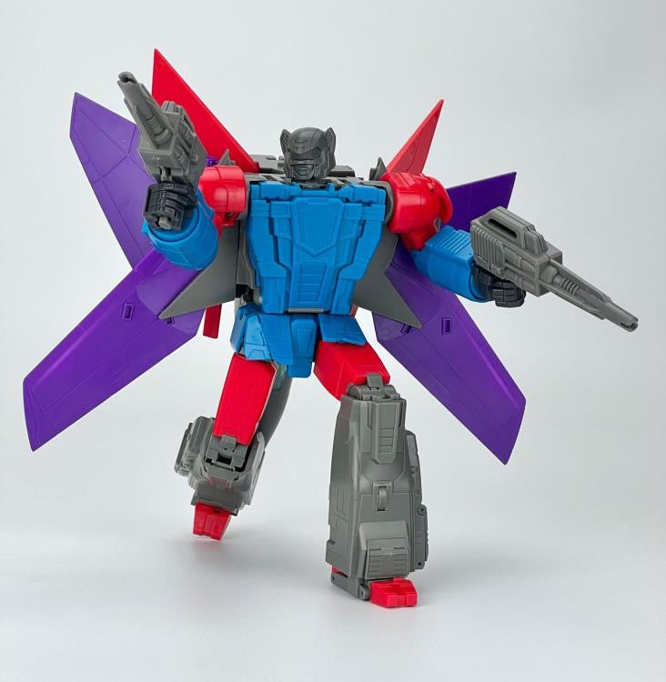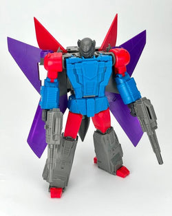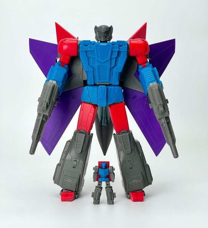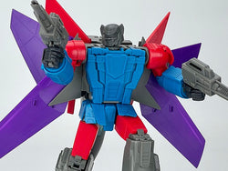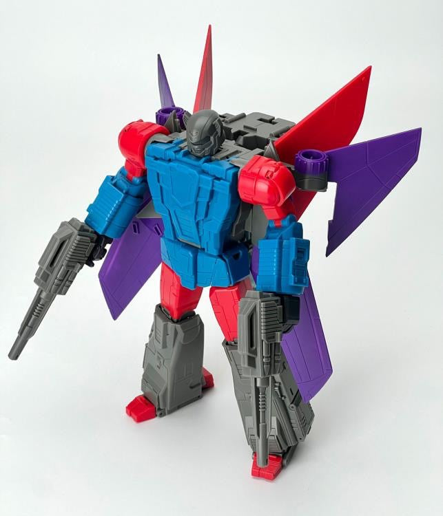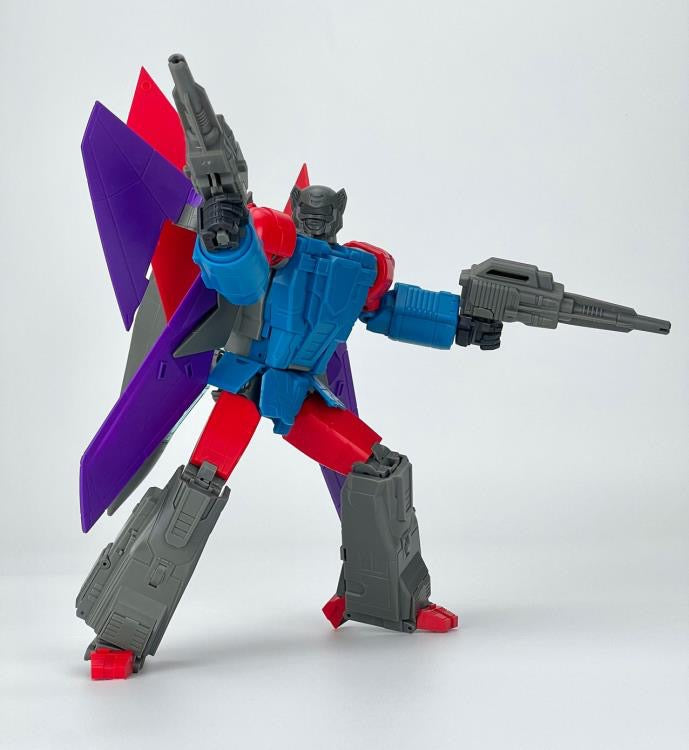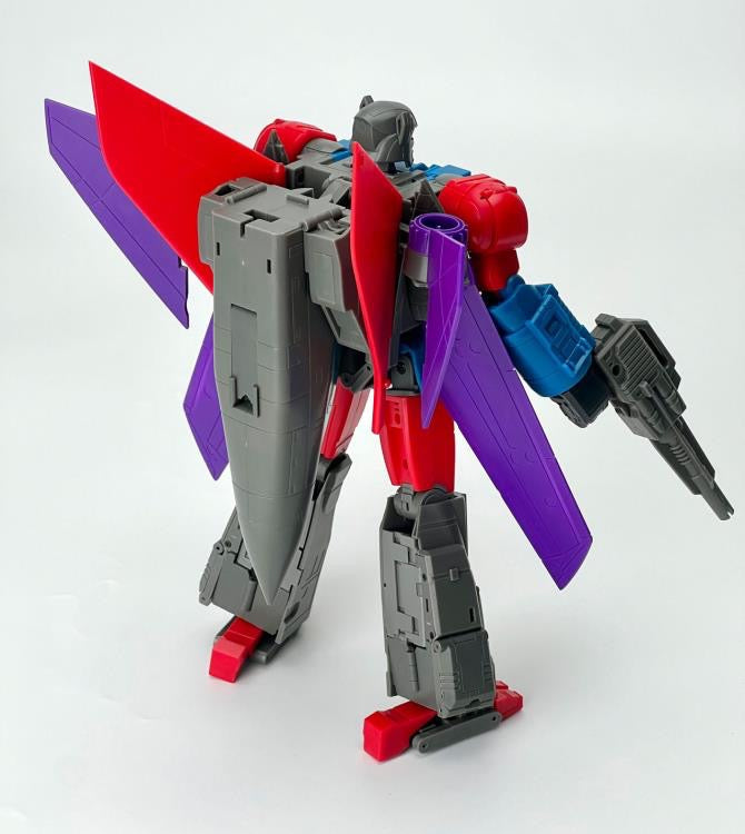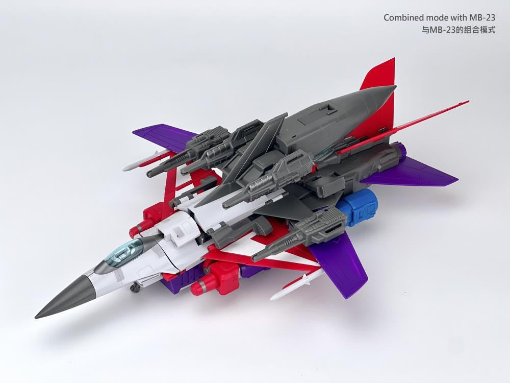 From Fans Hobby comes the Master Builder MB-24 Lernaean converting robot. This robot features a red, blue, and gray color scheme and can convert into a jet. This highly detailed Lernaean figure will be a terrific addition to any collection.