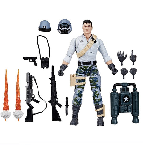 G.I. Joe is a highly skilled, on-demand, special operations force of men and women from around the globe tasked with defending the world from Cobra, a ruthless criminal organization bent on total domination. The brave members of G.I. Joe are prepared to seek out Cobra in any environment on the planet. From hostile jungles to ice-clad arctic peaks…wherever there’s trouble, G.I. Joe is there. Meet Edward ""Starduster"" Skylar, newest figure to the G.I. Joe Classified Series line. He specializes in air reconnaissance and tactical air support. Whether you send him up for a look at Cobra’s latest troop movements or call him in as extra airborne firepower, Starduster comes ready for adventure, with multiple points of articulation for high poseability. This Starduster figure contains 14 character-inspired accessory pieces including Steel Corps helmet, his signature visored helmet, binoculars, 4 alternate hands, knife, J.U.M.P. jetpack with 2 removable blast effects, and 3 weapon accessories