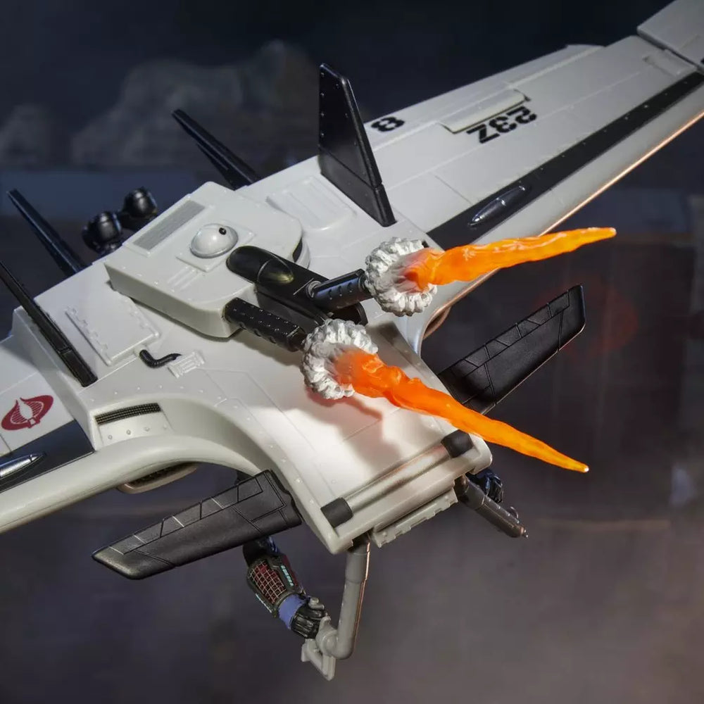 - COBRA TAKES FLIGHT: The enemy battle wing features retractable landing gear with manually rolling wheels; pivoting canards, ailerons, and wing tips; swiveling turret with articulated barrel; 2 jet thruster blast effects; and 2 missile accessories