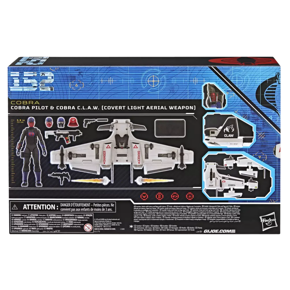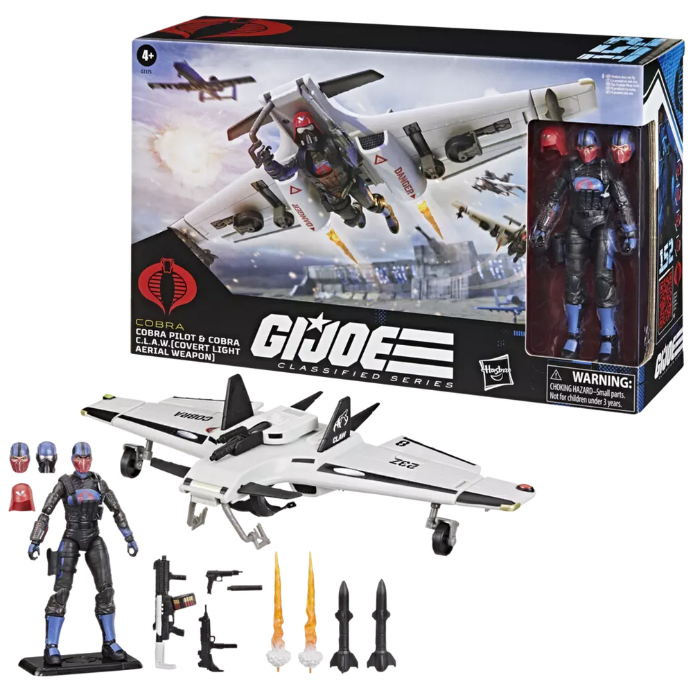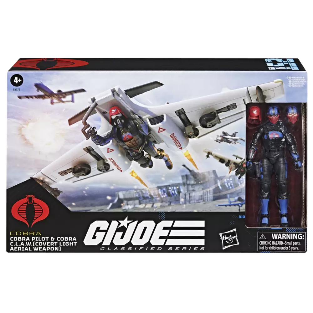 - HIGHLY POSEABLE WITH PREMIUM DETAILING: G.I. Joe Classified Series Cobra Pilot & Cobra C.L.A.W. (Covert Light Aerial Weapon) action figure set features exceptional detailing and articulation to create dazzling dioramas (some poses may require additional support)
