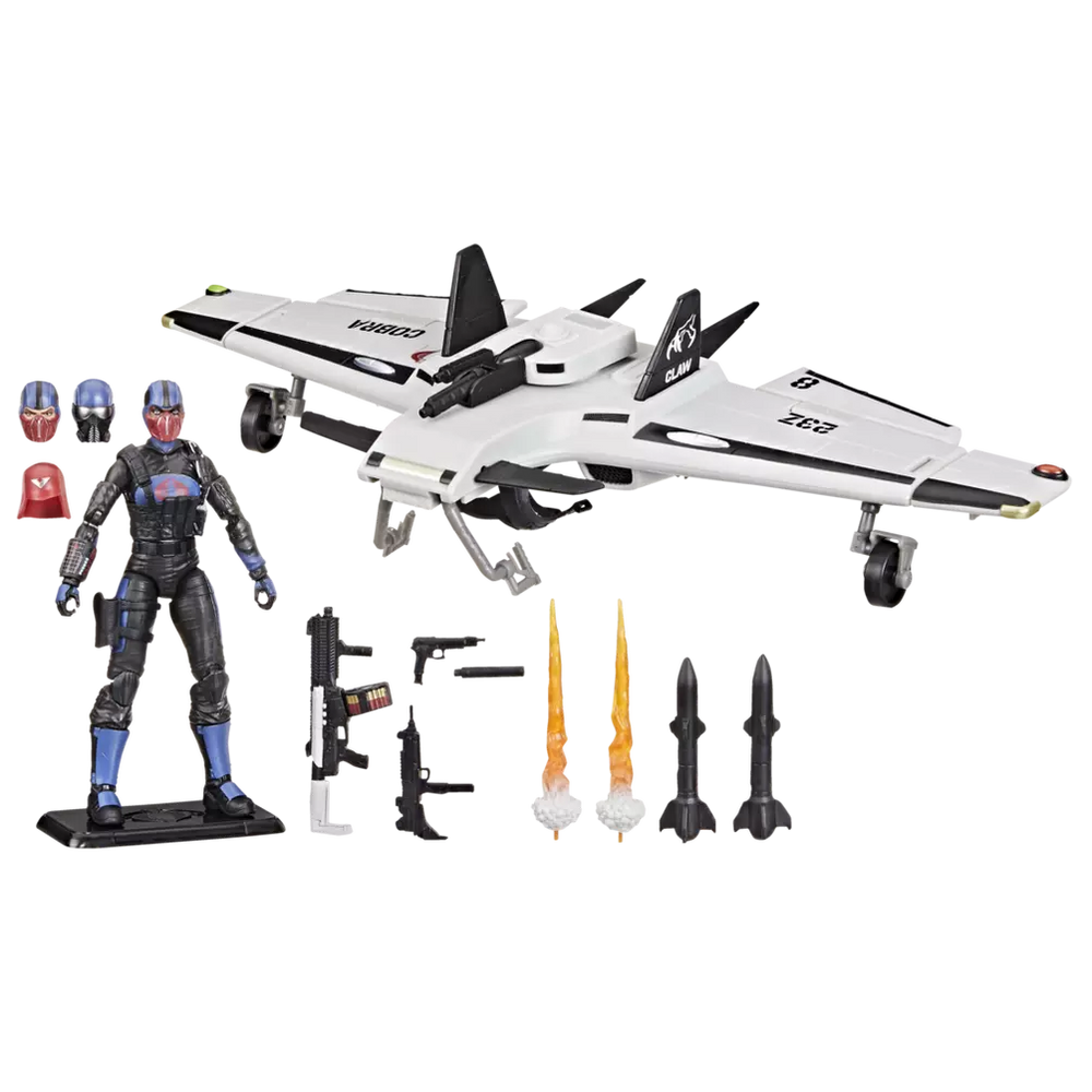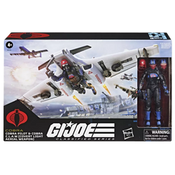 G.I. Joe is a highly skilled, on-demand, special operations force of men and women from around the globe tasked with defending the world from Cobra, a ruthless criminal organization bent on total domination. The brave members of G.I. Joe are prepared to seek out Cobra in any environment on the planet. Wherever there's trouble, G.I. Joe is there. New to the G.I. Joe Classified Series line, Cobra Pilot & Cobra C.L.A.W. (Covert Light Aerial Weapon) figure and vehicle set comes ready for adventure, with multiple points of articulation for high poseability. This Cobra Pilot figure contains 9 character-inspired accessory pieces including removable helmet, 2 alternate heads, figure stand, and weapon accessories. The Cobra C.L.A.W. vehicle features retractable landing gear with manually rolling wheels; pivoting canards, ailerons, and wing tips; swiveling turret with barrel that articulates up and down; 2 jet thruster blast effects; and 2 missile accessories. G.I. JOE and HASBRO and all related trademarks and logos are trademarks of Hasbro, Inc.