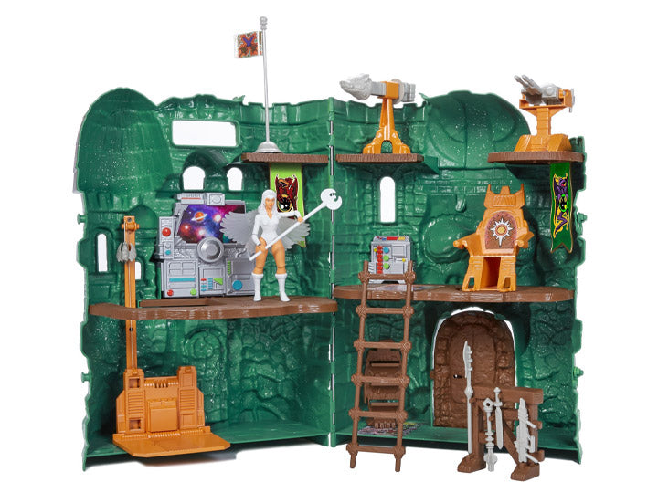 Large-scale playset opens to reveal a four-room interior - great for storytelling play and display. Includes lots of MOTU themed accessories for maximum customization! Includes real working elevator and trap door that fans of the original are sure to love.