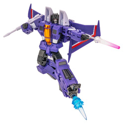 NA H14P Leraje is a mini fighter jet from Newage and is able to convert into a battling robot figure. Leraje includes several accessories.