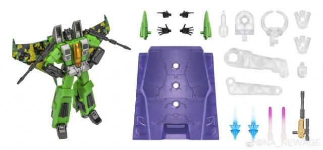 NA H15L Firfur is a mini fighter jet from Newage and is able to convert into a battling robot figure. Firfur includes several accessories.