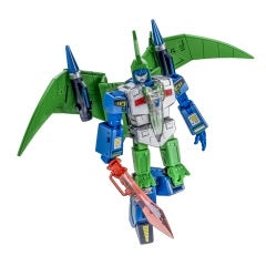NA H57V G2 Freyr is a pterodactyl from Newage and is able to convert into a battling robot figure. This figure includes several different accessories - including alternate hands and a sword! With multiple points of articulation, this figure will make a great addition to any collection!