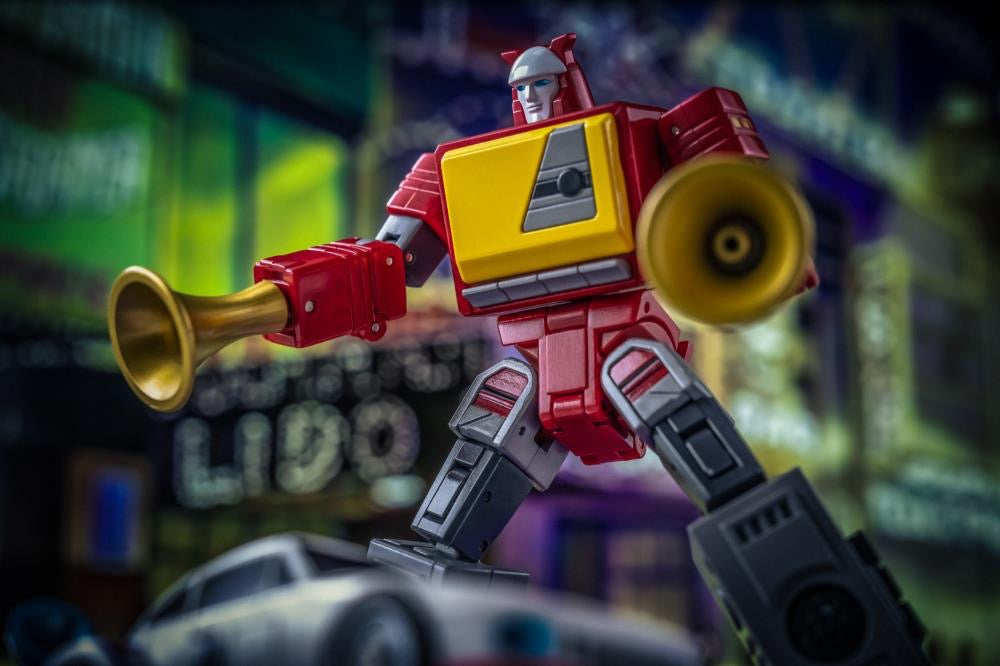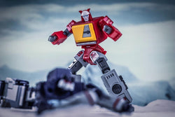 H62 Louie by Newage converts from a cassette player to a battling robot figure. This figure includes several accessories including a blaster, alternate hands, and an alternate megaphone hand parts! With multiple points of articulation, this figure will make a great addition to any collection!