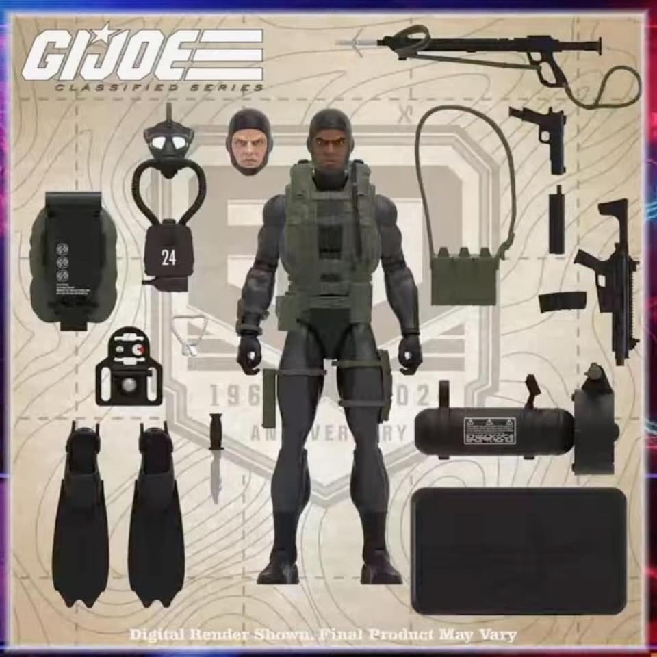 G.I. Joe debuted in 1964 with the Original Action Figure honoring the members of America’s military. The Action Soldier, Sailor, Marine, and Pilot left an indelible impression on generations and launched a toy franchise that continues to thrive finding new fans. In celebration of its 60th Anniversary, G.I. Joe is reaching back into its storied past to bring those movable fighting forces into the modern era. New to the G.I. Joe Classified Series line, 60th Anniversary Action Sailor - Recon Diver comes ready for adventure, with multiple points of articulation for high poseability. This Recon Diver figure is bursting with 17 character-inspired accessory pieces including alternate head, dog tags, submersible, diving gauge, rebreather and mask, diving knife, 2 fins, speargun, figure stand, satchel, backpack, and multiple weapon accessories. The G.I. Joe Action Soldier stands alongside fellow Infantry ready to take on enemy forces around the globe.