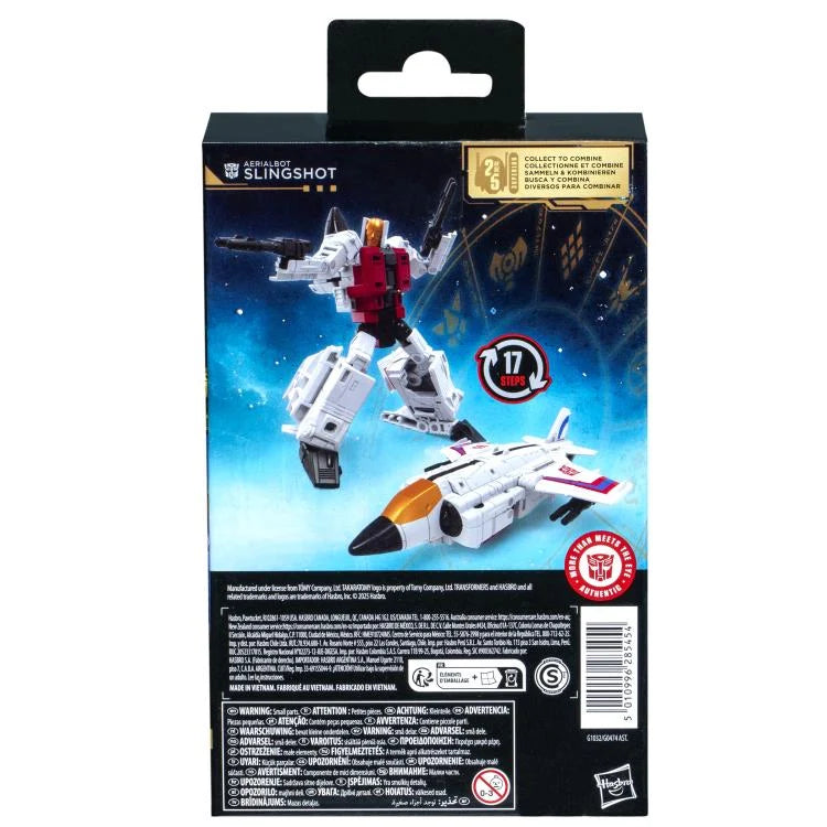 This 5.5-inch Aerialbot Slingshot action figure converts between robot and jet modes in 17 steps. Combine the Slingshot figure with other Transformers Aerialbot action figures to create Superion action figure! (Each sold separately, subject to availability.) The Aerialbot Slingshot figure is inspired by the character from the Transformers universe and features articulated head, arms, and legs for awesome action poses.