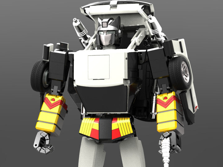The XTransbots Yaguchi figure stands about 6 inches tall in robot mode and transforms into a car. Yaguchi features real rubber tires, doors that open and close, as well as a gun and replacement faces!