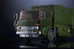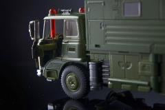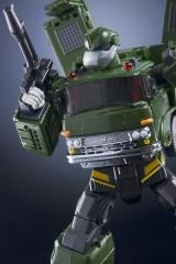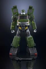 The XTransbots Bulwark figure stands about 9 inches tall in robot mode and transforms into a military truck. Bulwark contains a die-cast in the joints and feet and features rubber tiresand tinted widows.