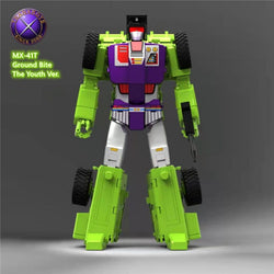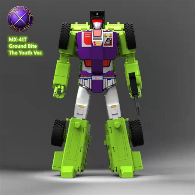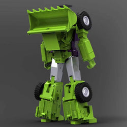 The MX-41 Ground Bite figure transforms from robot to bulldozer! Ground Bite features a high quality paint job with a fully articulated body and multiple accessories.